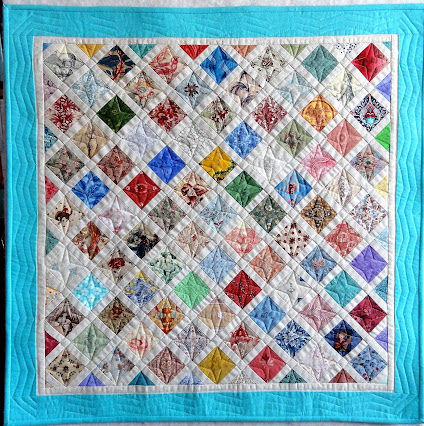 SEA SPARKLE, 2021, 23"X23", Paper Pieced, Machine Pieced, Machine Quilted, owned by Wyatt Cosat.